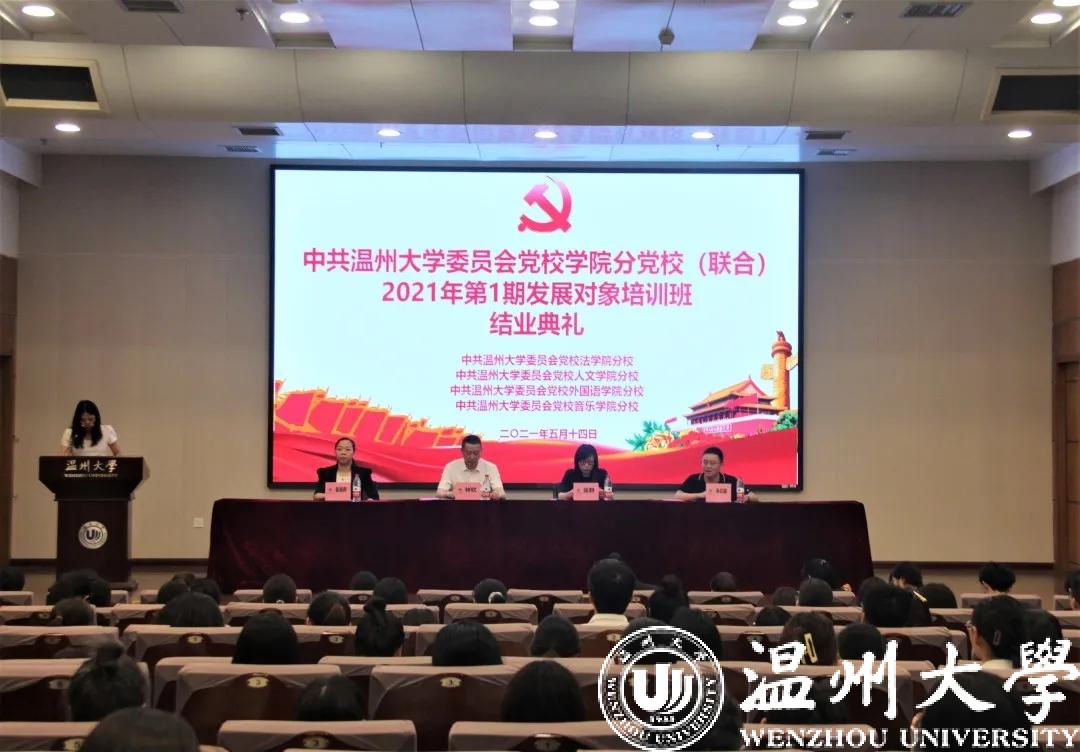 中共黄色视频 委员会党校学院分党校(联合)2021年第1期发展对象培训班结业典礼于5月14日中午12:40在北校区信息楼报告厅圆满举行。出席并参加本次结业典礼的有:黄色视频 党委书记、分党校校长林钦,人文学院党委书记、分党校校长吴静,外国语学院党委书记、分党校校长姜海燕,音乐学院党委书记、分党校校长朱启鑫以及各学院党建工作负责老师、全体发展对象。
