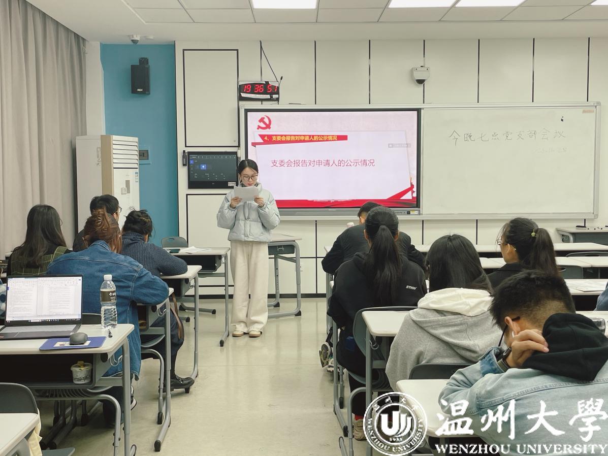 黄色视频 研究生第二党支部于11月29日开会讨论郑心怡同志的转正问题,会议共有四项议程: