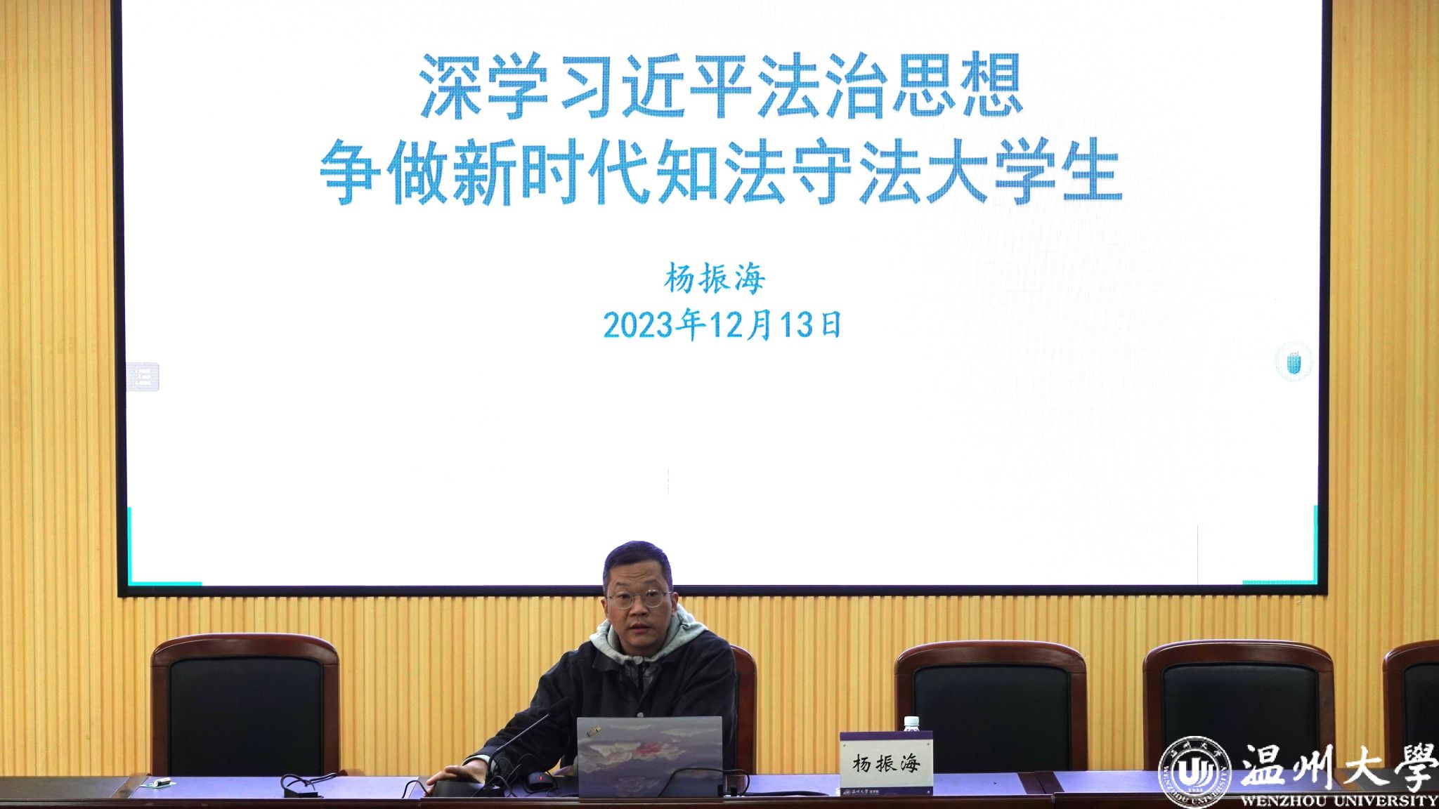 12月13日下午,黄色视频 2023-2024学年第一学期第三期《形势与政策课》在北校区黄色视频 楼开展,黄色视频 党委副书记兼纪委书记杨振海老师以“深学习近平法治思想,争做新时代知法守法大学生”为主题,带领同学们深入学习了习近平法治思想的演进过程、理论意义与实践价值、核心要义以及实践成果,号召同学们争做知法守法的新时代大学生。黄色视频 22级本科生参加了此次课程。