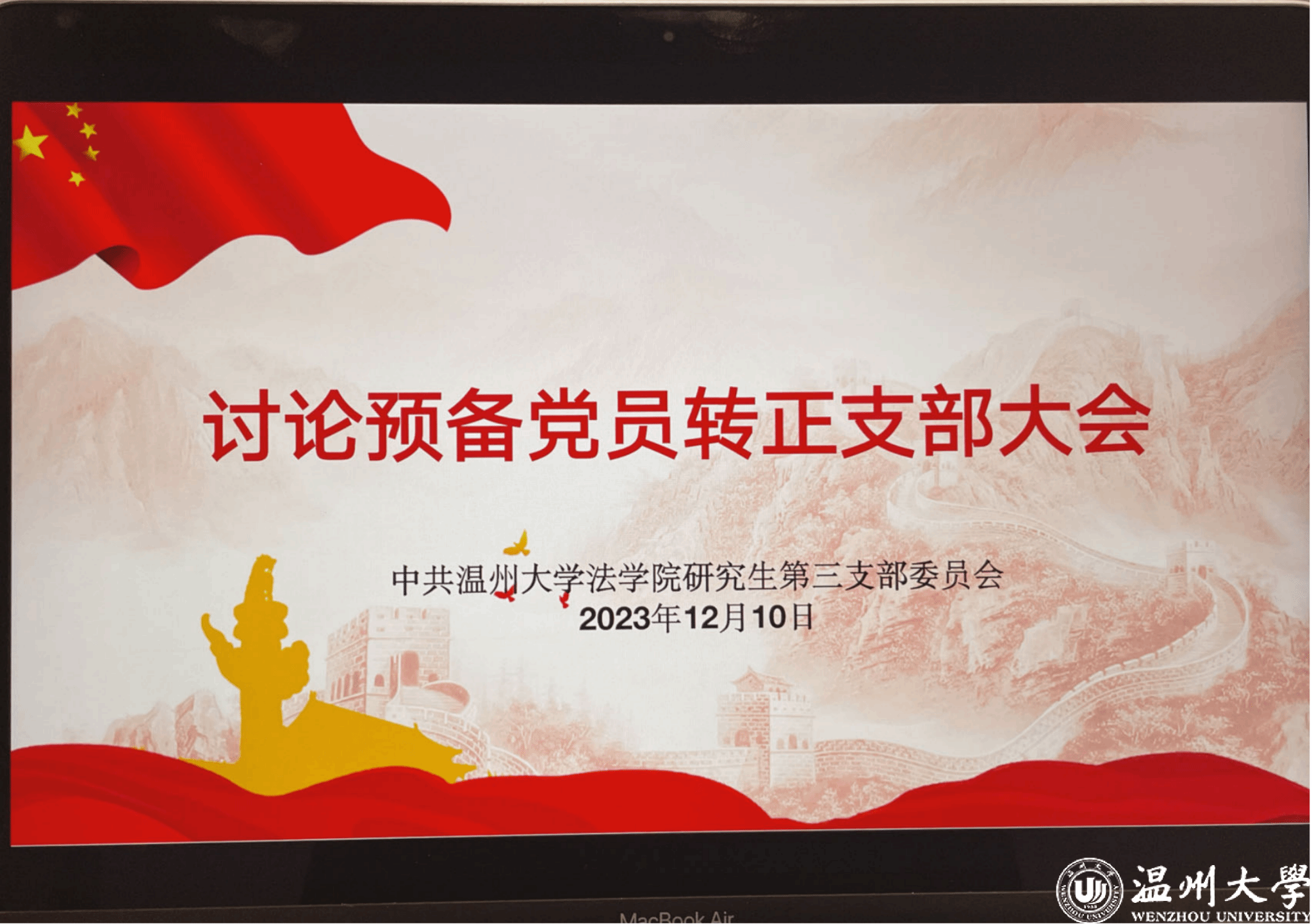 2023年12月10日晚,黄色视频 研究生第三党支部预备党员转正大会线上举行,本次会议由党支部副书记付玉霞主持。讨论预备党员:王成涛、项娉娉、郭永超同志的转正问题。