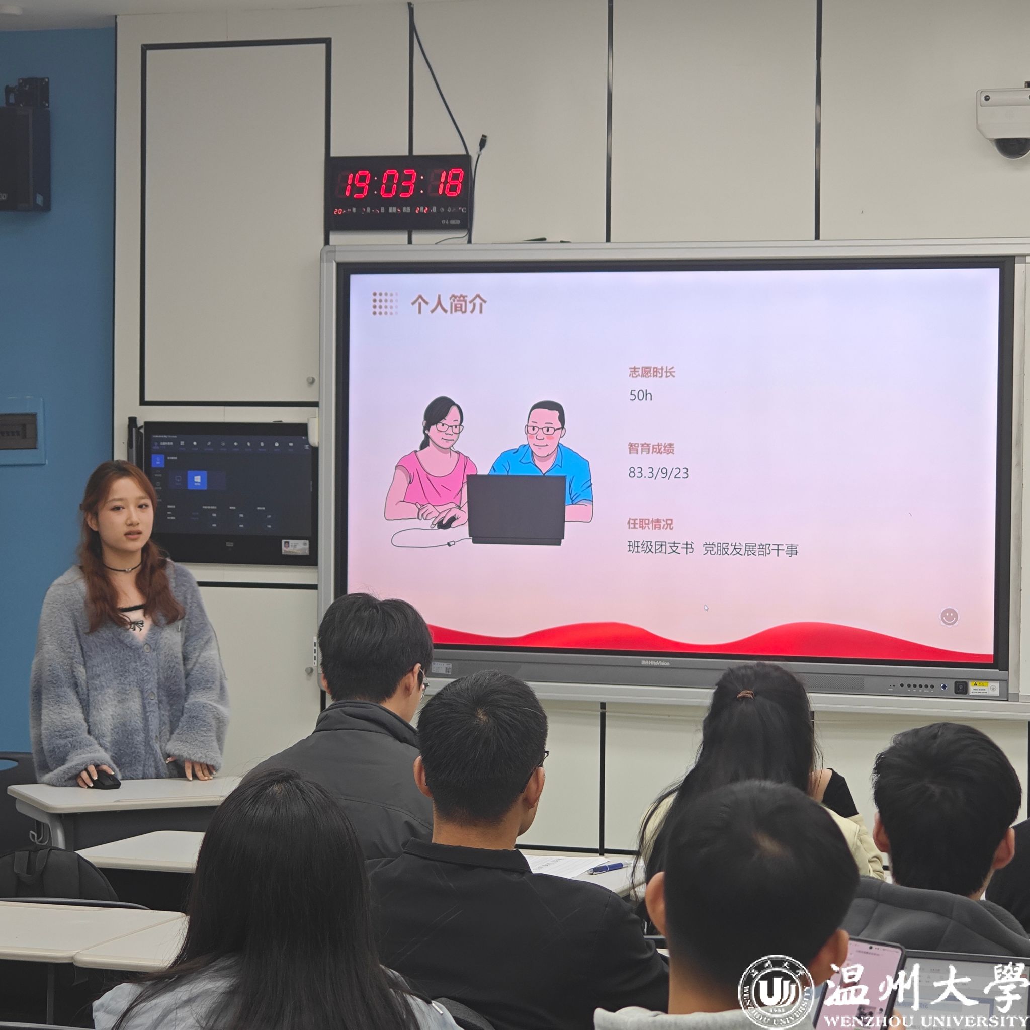 会议第二项议程:拟发展对象进行个人汇报展示。2位拟发展对象分别从入党动机、思想学习、学习工作、志愿服务等方面进行了充分的自我介绍。