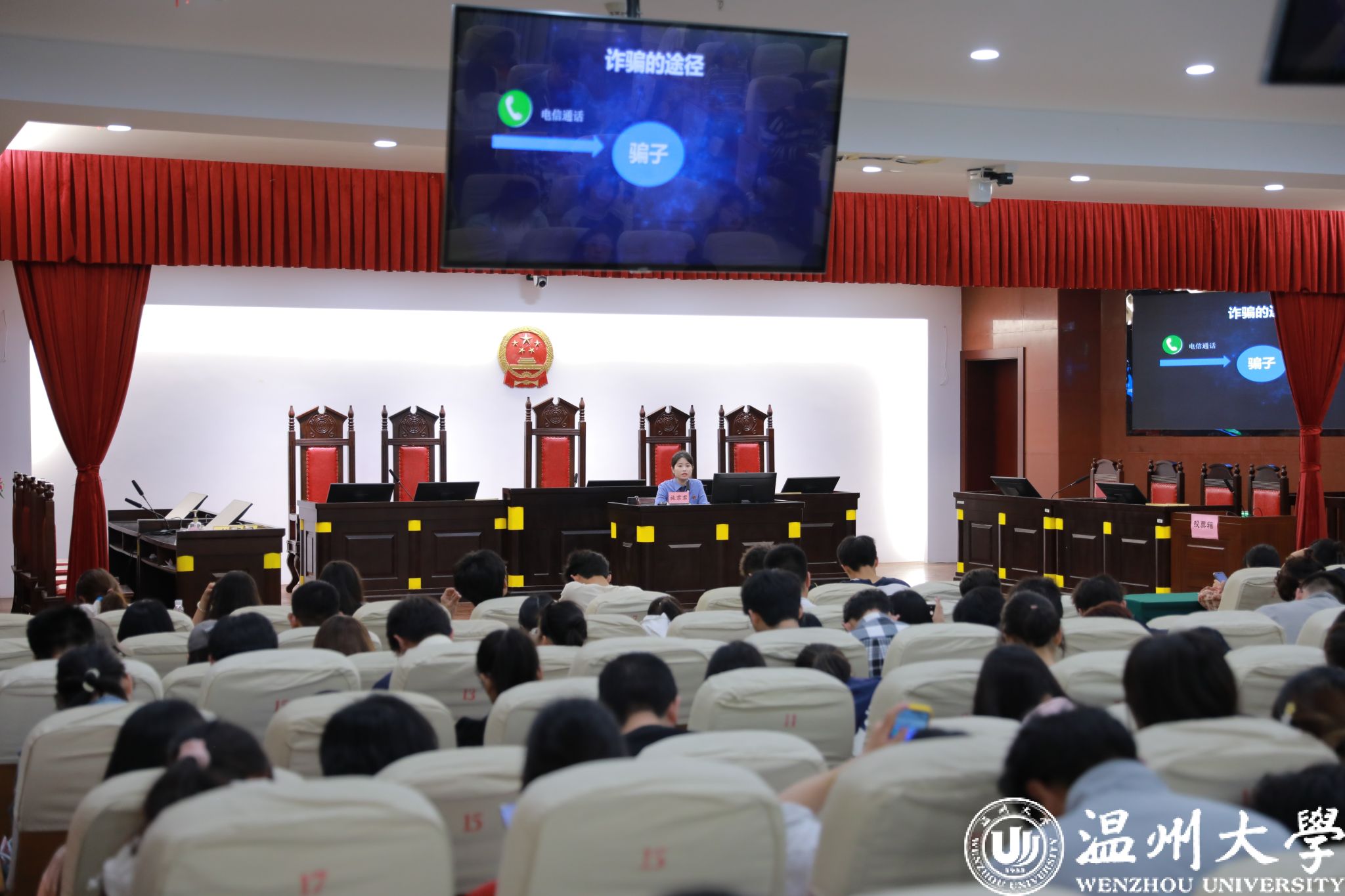 4月17日下午,黄色视频 2023-2024学年第二学期第二期《形势与政策课》在北校区模拟法庭举办,黄色视频 23级本科生参加了此次课程。本次形势与政策课中,来自温州市瓯海区人民检察院的施君君老师用自身职业经历引出了主题,为同学们普及了防诈骗的相关知识,增强了同学们对电诈的甄别能力和应对意识。