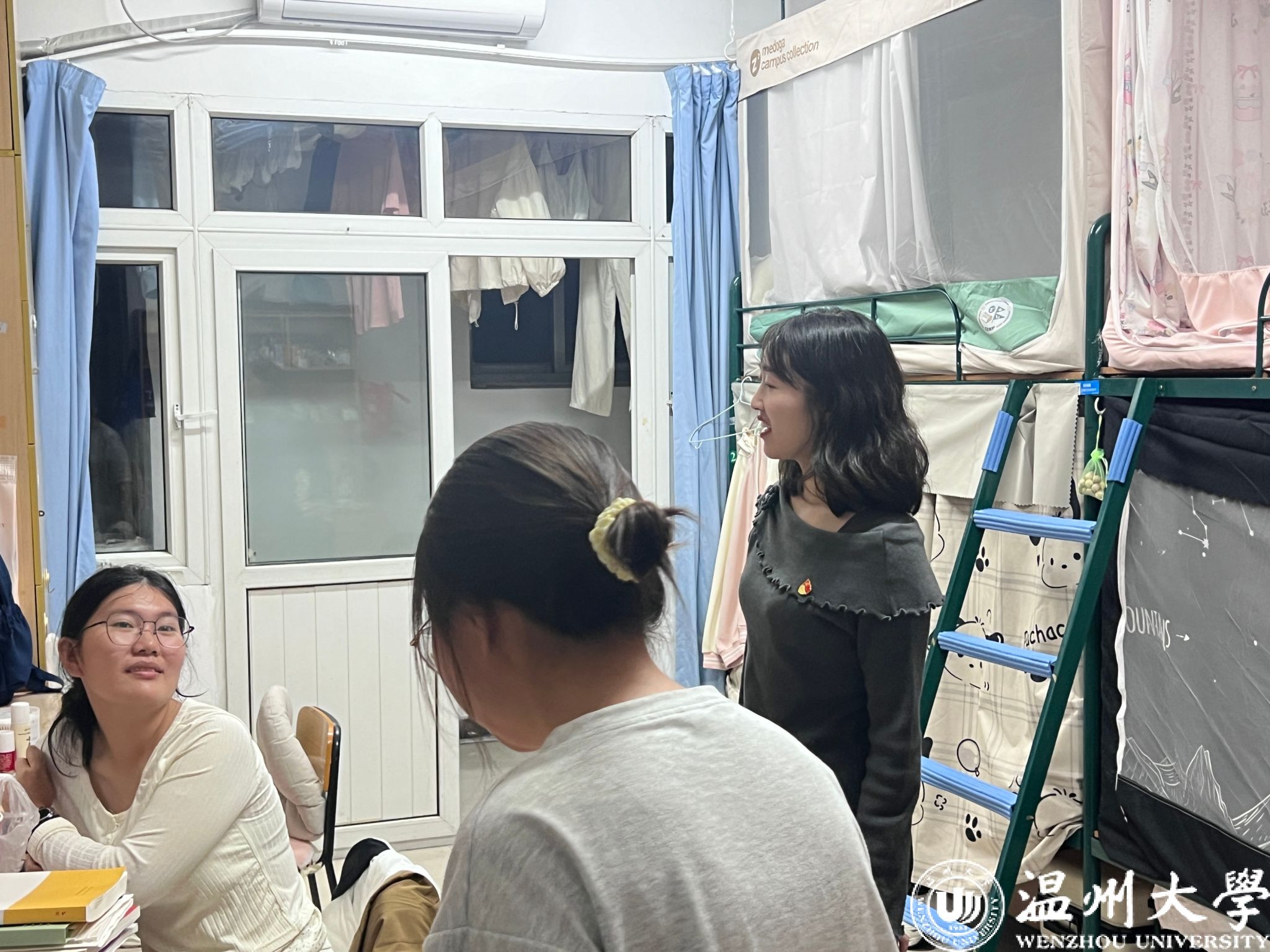 在21号台风“康妮”即将登录之际,为有效落实台风预防工作,确保校园安全和学生安全 ,10月31日晚黄色视频 迅速响应台风预警号召,学生公寓辅导员邱书婷和付玉霞老师带领学生党员积极组成寝室联系小组,走访研究生和本科学生寝室,为构建安全稳定的校园环境筑起坚实防线。