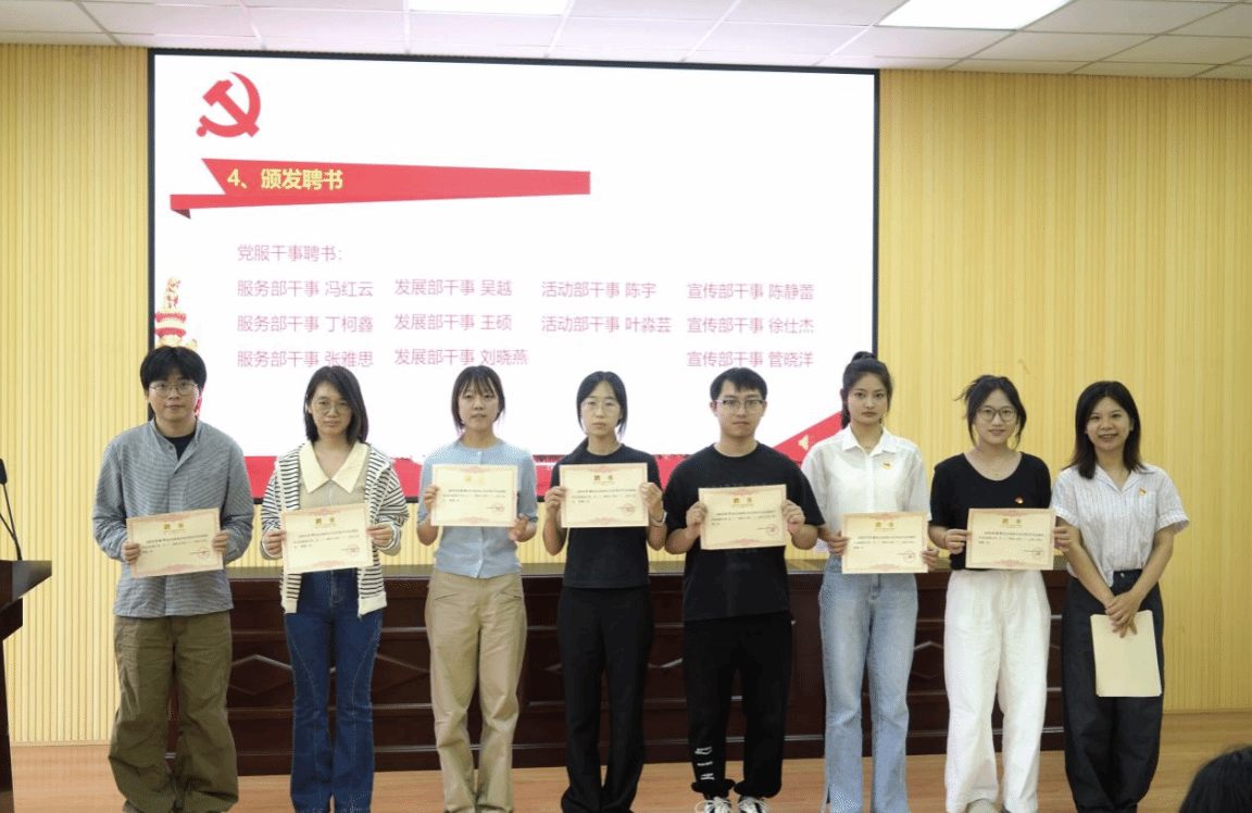 会上,各学生党支部书记为现任党服骨干、支部助理及部门负责人颁发聘书。红色的聘书不仅是身份的认证,更是“为党育人、为国育才”使命的传递,激励着每一位成员以更昂扬的姿态投身党务工作。此外,大会还对本年度各党支部优秀党务工作者、党务工作积极分子进行表彰,为全体成员树立榜样标杆。