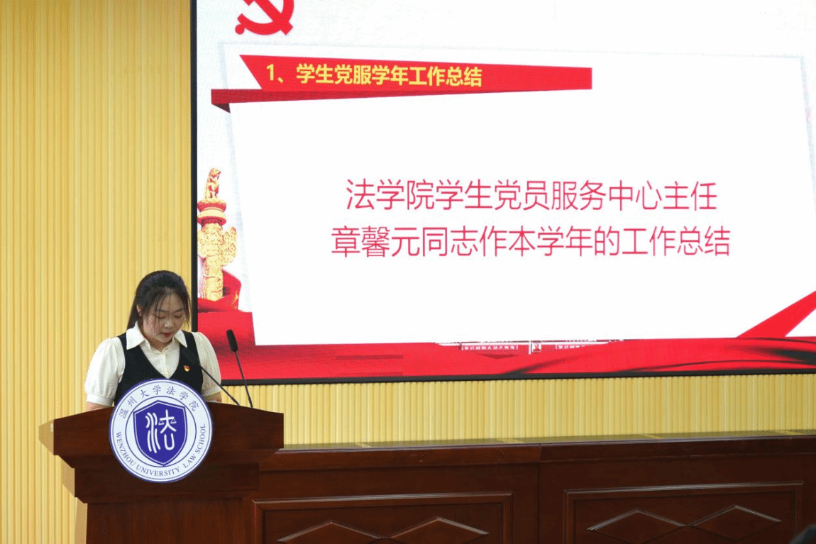 大会伊始,学院学生党员服务中心主任章鑫元同学以详实的工作数据回顾本学年工作成果。她提到,在院党委的统筹领导下,党员服务中心紧扣“强组织、优服务、促发展”工作主线,在健全组织架构、明晰岗位职责、深化党员教育、规范发展流程、创新党建活动等维度持续发力,推动多项工作迈上新台阶。随后,研究生杨钰莹同志作为上一任党服副主任分享感悟,她高度肯定历届党服成员“恪尽职守、务实高效”的工作作风,特别强调要传承好“党务小百科”的服务品牌,以更高标准提升工作质效。