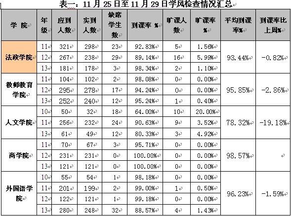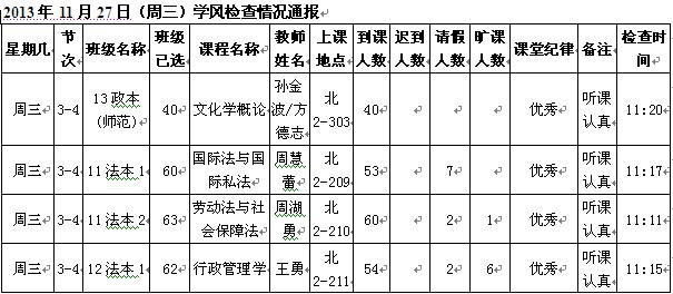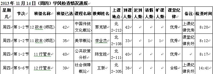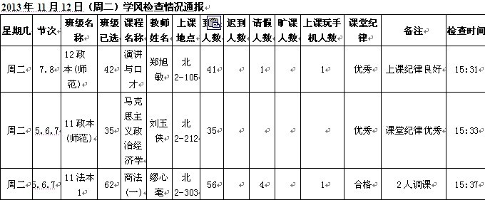 学生处每天派出人员不定时检查学生出勤,并将结果公布