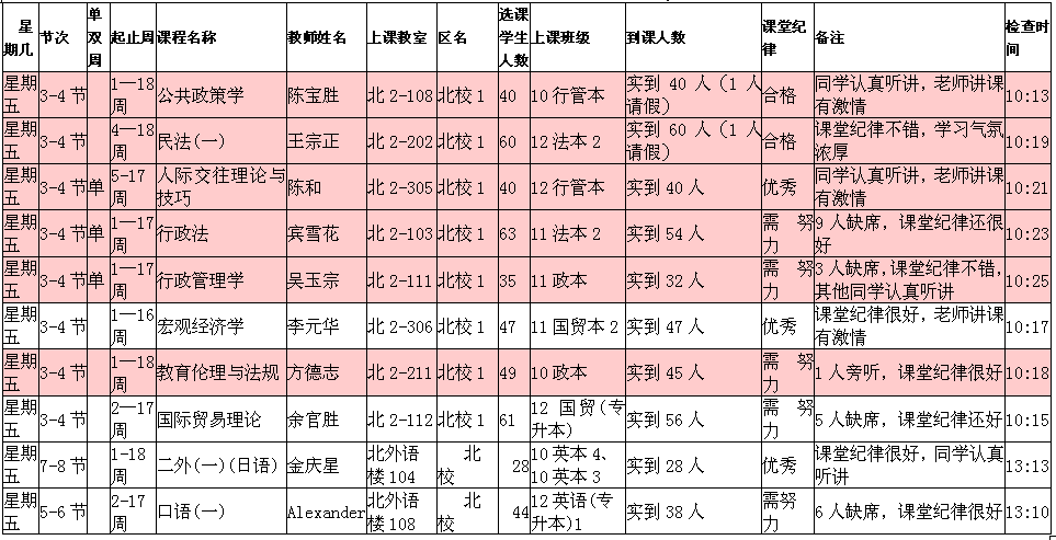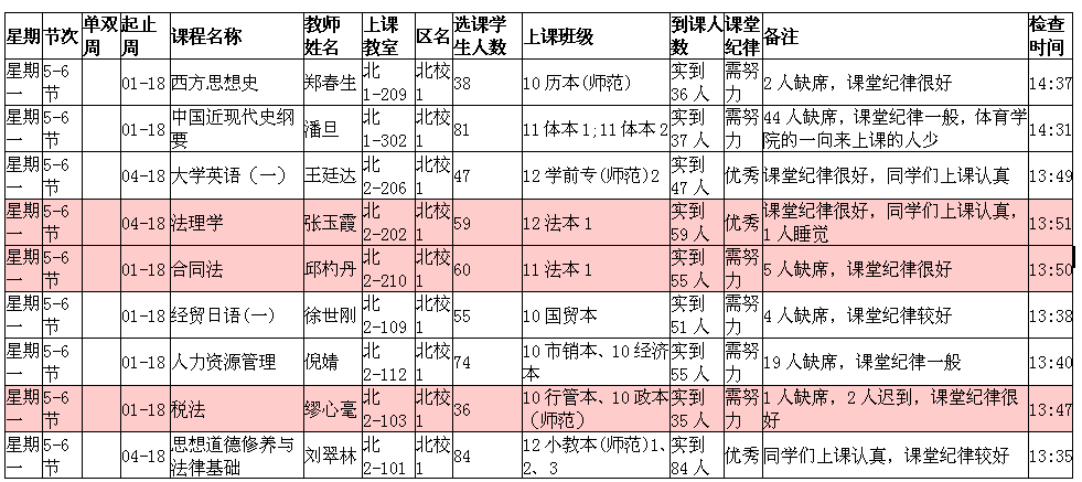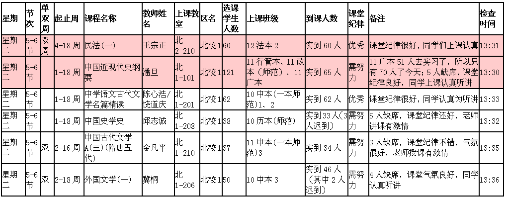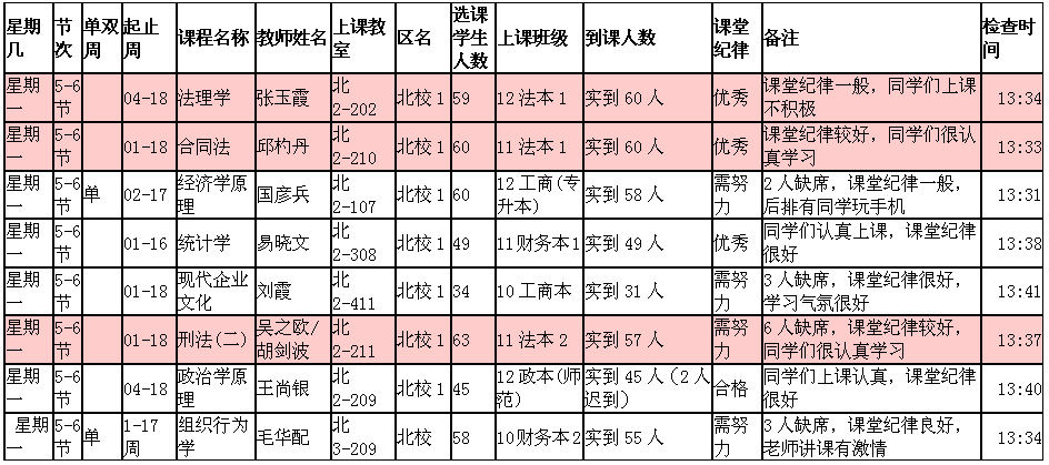 课堂纪律评价标准:1.优秀,人员到齐,纪律良好;2.合格,人员到齐或有请假,纪律一般;3.需努力,有缺席或迟到,纪律欠佳。