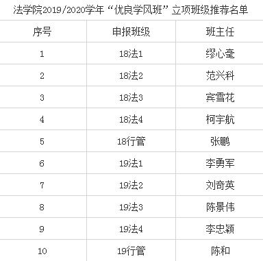 根据黄色视频 2019/2020学年“优良学风班”立项申报工作的通知要求,经班级申报、学院初步审核,现决定对18法学1班等10个班级进行立项推荐,现将结果予以公布。