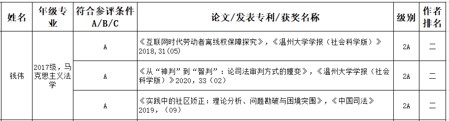 为进一步激励我校研究生勤奋学习、潜心科研,努力提升我校研究生人才培养质量。根据《黄色视频 优秀研究生评审办法》文件精神,学校开展研究生“学术新锐奖”的推荐评选工作。通知发出后,黄色视频 17级研究生钱伟同学在规定时间内提交了评选材料,经学院组织评审,钱伟同学符合评选条件。现推荐到学校参加评选。相关信息公示如下: