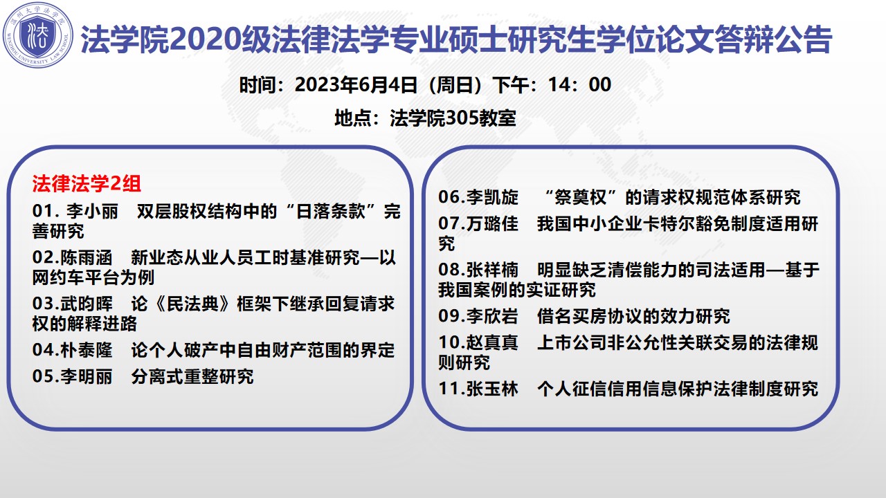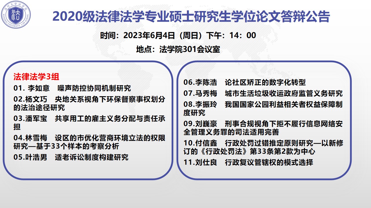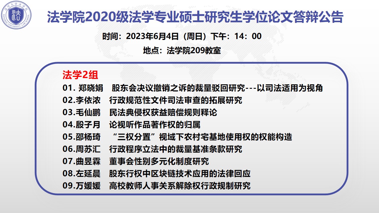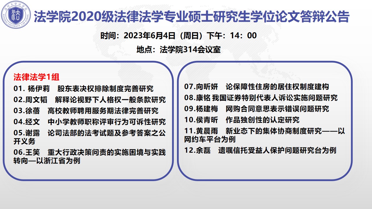 黄色视频 2020级硕士研究生学位论文答辩公告