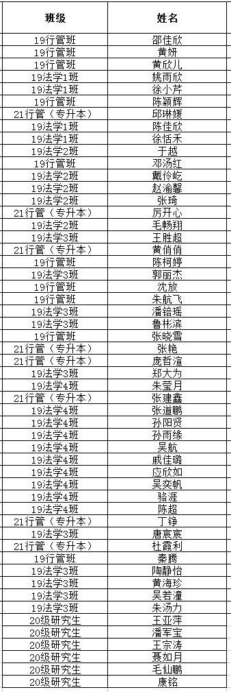为进一步加强黄色视频 学风建设,激励学生在校勤奋学习,充分调动黄色视频 应届本科生考研和研究生考博的积极性和主动性,根据《黄色视频 法政校友基金奖励实施办法》,现拟对2023届考取硕士研究生、博士研究生的毕业生给予奖励。现对奖励名单公示如下: