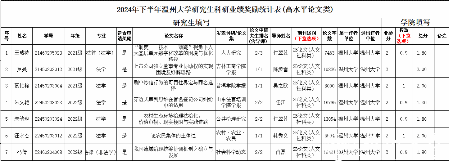 根据《黄色视频 研究生科研奖励办法(2017年修订)》及学校关于2024年下半年研究生科研奖励申请的通知,经学生申请、学院审核,现将申请结果公示如下。公示结束后,提交至学校研工部审核,学校根据相关“奖励办法”(见附件)给予奖励。