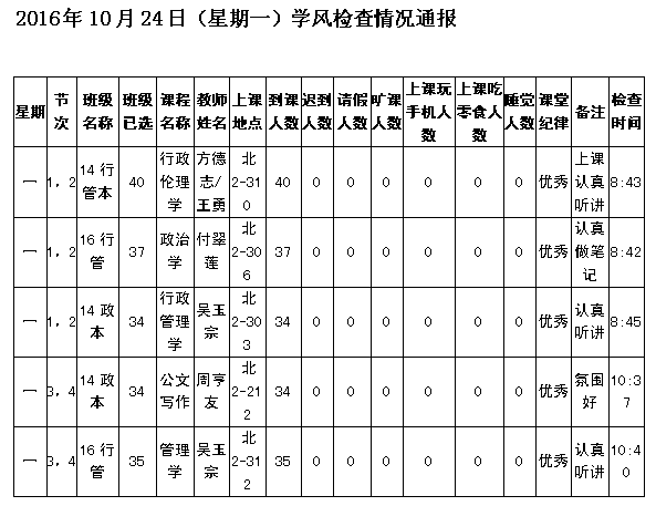学校学风检查法政学院情况(12.26更新)