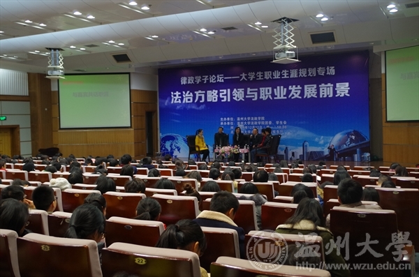 为指导提升大学生职业生涯规划意识和能力,搭建在校生和优秀校友交流平台,2014年12月22日晚,法政学院在北校信息楼报告厅举办"法治方略引领与职业发展前景"职涯规划专场律政学子论坛,邀请优秀校友和在校生就学业就业和职业生涯展开深度对话,共话校园故事和青春梦想。