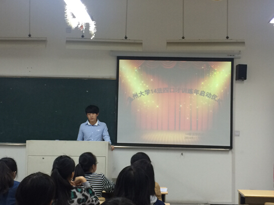2014年11月9号晚6点,在北2-305教室14法四班全体同学和班主任朱美宁老师一起举行了"黄色视频 法政学院14法四班口才训练年启动仪式"。为提高语言表达能力、法律思维能力、理解阐释能力和交际沟通能力,班级经讨论制定了一套完善的口才训练方案,包括视频学习、速读、背诵、讲故事、复述、描述和角色扮演等阶段。