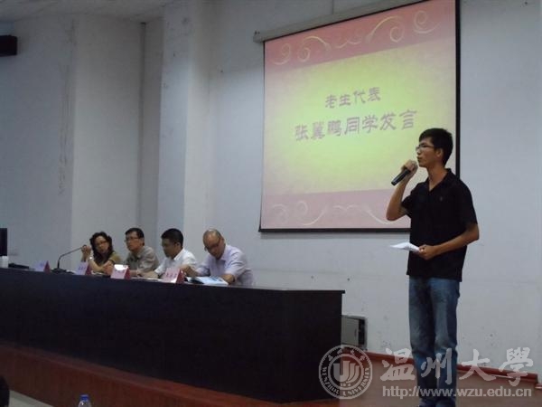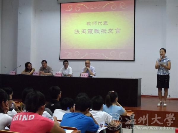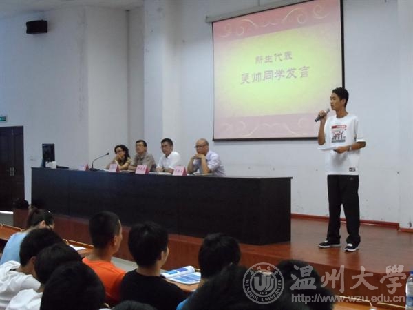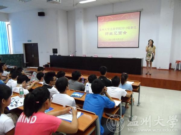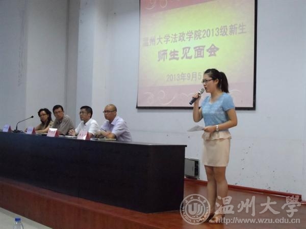 首先,钭晓东院长致辞对新生来到法政学院学习表示热烈欢迎。钭院长在致辞中向新生介绍了法政学院的办学历史、办学特色和教学科研概况,特别提及了近几年由法政学子获得的各类学业成绩和重大奖项,他指出在法政学院的优秀师资和良好学院文化环境中,2013级新生同学只要努力拼搏,一定不会后悔选择温大法政学院这个培养了众多人才的"人才黄埔",他希望法政学子们能继承和发扬学院的优良学风,通过几年的在校学习使自己真正成为一名专业扎实、素质全面、服务社会的人才。副院长王宗正对学院和专业情况作了详细介绍,王院长说起学院的情况如数家珍,他逐一介绍了学院各专业设置和建设情况,并希望新生尽快适应大学学习生活,注重理论与实践结合,利用好学校和学院的优质学习资源全面规划与发展自己。法学系张玉霞教授代表全院老师对2013级新生的到来表示热烈欢迎,张教授虽是新生的长辈和老师,但更像是每一位新生的朋友,她饱含感情的给每一位新生提出了一连串的大学课题和期待,期待新生珍惜大学生活,努力学习专业知识,养成文明的生活习惯,保证身心健康,力求全面发展,做一名优秀大学生。老生代表、院学生会主席张翼鹏同学和13级新生代表吴帅同学也作了充满激情的发言,分别表达了作为法政学子在成长成才方面的决心和信心。