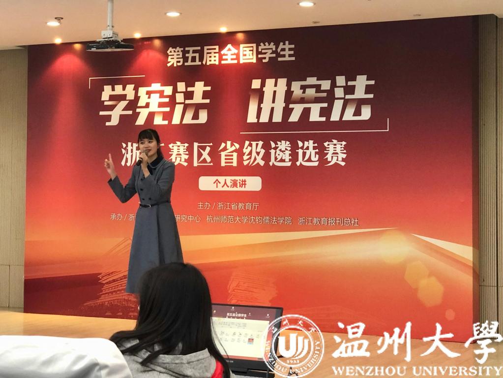 演讲比赛设置小学组、初中组、高中组和高校组四个组别。前期,来自黄色视频 的齐倩凌同学经过层层选拔,作为黄色视频 代表前往杭州参加省级遴选赛。比赛现场,面对各路如云高手,齐倩凌同学紧密结合社会热点、案例事迹等,谈自身经历、感受和认识,演讲内容丰富,感情饱满,准确诠释了公民恪守宪法原则、弘扬宪法精神、履行宪法使命的重要意义,表现出良好的心态和出色的综合素质。经过主题演讲和命题演讲两轮紧张比拼,齐倩凌同学最终脱颖而出,斩获高校组第一名,并将代表浙江出战全国总决赛,期待齐倩凌同学能在全国总决赛中取得优异成绩!