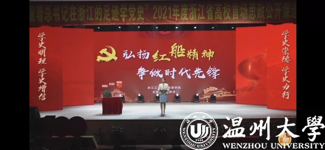 正值中国共产党成立100周年之际,新成立的党史宣讲团将带着他们的思政微课作品以总书记在浙江的足迹学党史为主题和基层青年和广大同学共同传承红色基因、守好红色根脉,从百年党史中汲取精神、智慧和力量。本次思政公开课巡讲共有来自五个学校的六名宣讲团成员,他们分别是浙江工业大学的刘新月、浙江大学的苏俊威、浙江工商大学的卢潇然、宁波职业技术学院的米娜瓦尔·艾力、宁波大学的沈妍伶、宁波职业技术学院的乐嵩。他们带来的六堂微课:《弘扬红船精神,争做时代先锋》《这一路星星闪耀—让战疫之光照耀全人类健康》《传承红色基因—我与红色的不解之约》《做一颗紧紧抱在一起的“石榴籽”》《“青年志”与“中国志”》《永驻心底的奋进之声》。