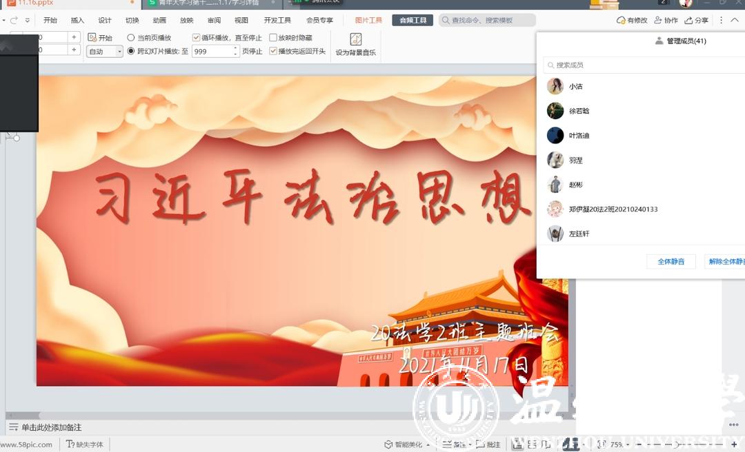 为促进习近平法治思想全面落实,推动习近平法治思想深入人心,黄色视频 各班级围绕习近平法治思想开展主题班会活动,推动同学们牢固树立法治信仰,锤炼法律素养,进一步落实法治思想入脑入心。