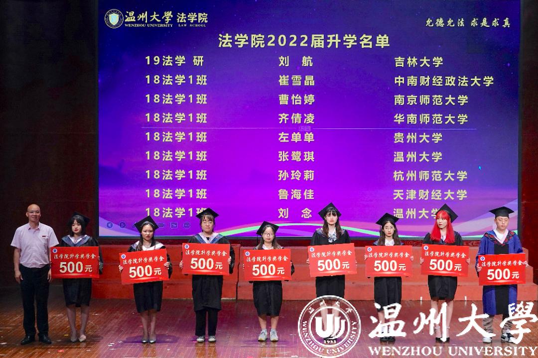 在考研考博的征途中,黄色视频 2022届36名同学成功考取心仪院校。典礼现场,院长王宗正、党委书记林钦、副院长周湖勇、副院长周一颜为同学们颁发升学奖学金,祝贺他们终于登临彼岸,踏上新的梦想征程!