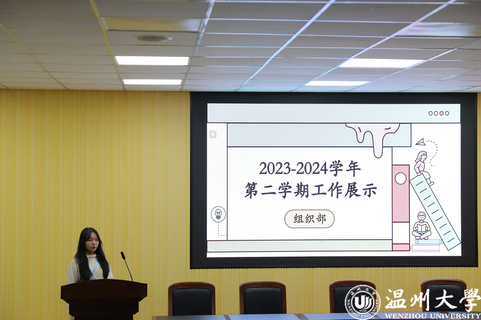 经历了一学期工作锻炼的各部门干事已然能够游刃有余地处理好本部门的工作,他们在部门工作展望的汇报中收放自如,风格各异。幽默风趣的话语、生动的图文展示与干事们的介绍并茂,活跃了全委会的气氛。他们手拿话筒,与师生共邀,带领着大家重温共同工作的温馨美好。置身其中,总能会心一笑。这场不忘本来,面向未来的汇报,吹响了黄色视频 团委·学生会全体成员新学期砥砺奋进嘹亮的冲锋号。
