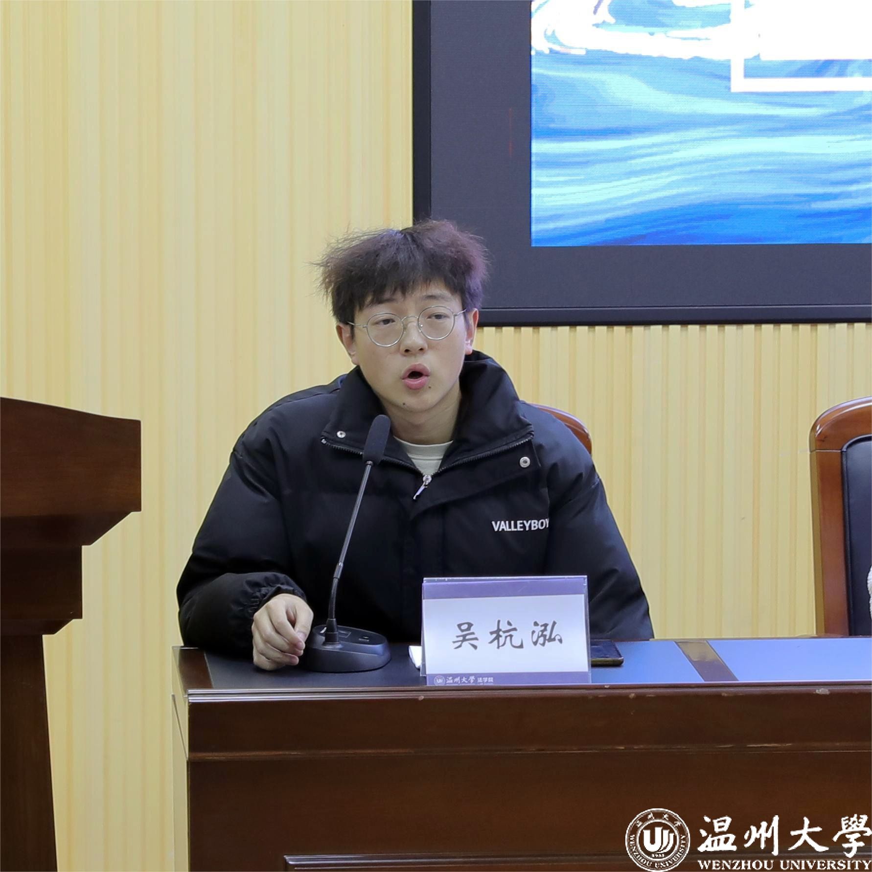 吴杭泓学长首先肯定了各部门干事工作圆满完成所取得的优异成绩,并向大家娓娓道来自己大学以来的学习和工作经历。在谈及协调团学工作和学习生活的同时还分享了自己宝贵的经验,期待与大家一同进步。他借团学工作为大家带来的收获为例,希望团学能够成为丰富同学们大学生活的途径。最后,吴杭泓学长祝愿大家“都能成为自己想要成为的人,靠近光,追逐光,成为光,散发光”,表达了他对各部门干事成员的殷切期望。