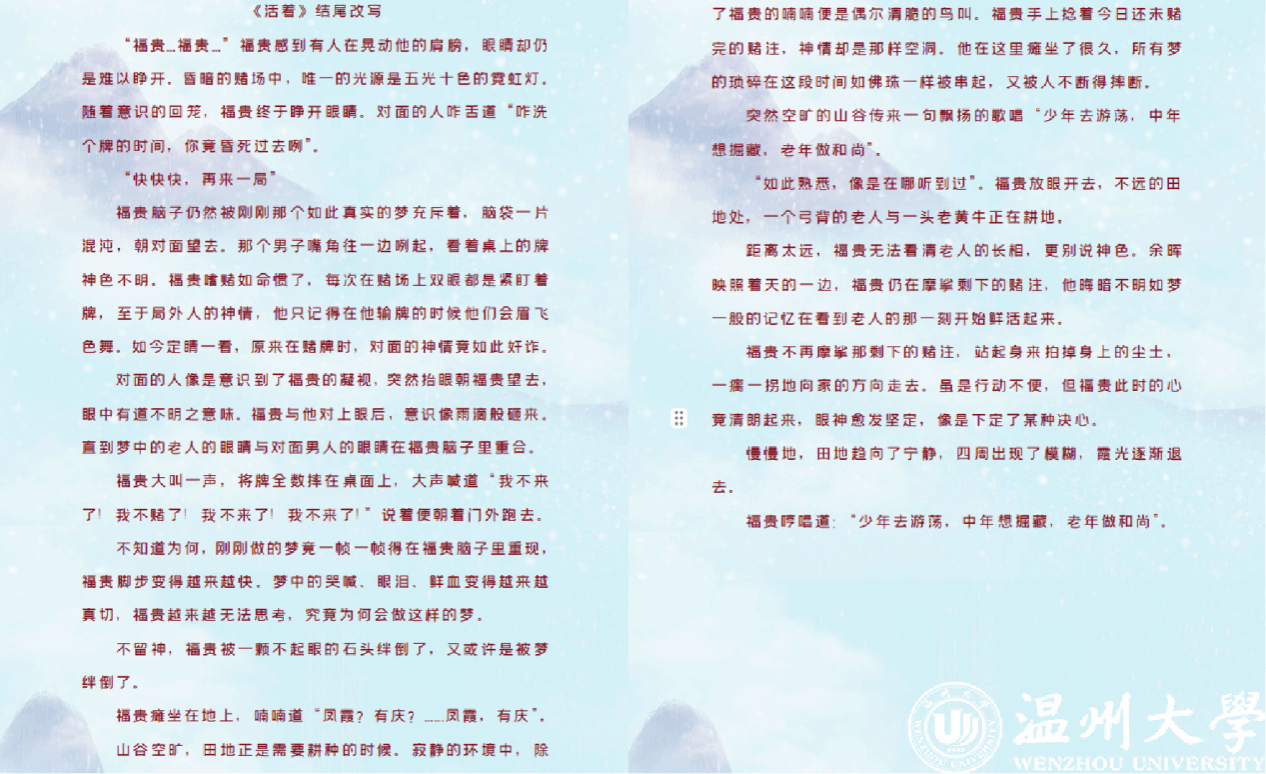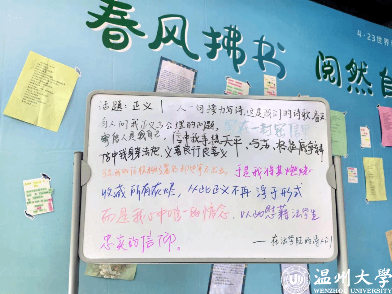 在书香飘逸的读书日,续写活动如一场文学盛宴,吸引着同学们前来赴宴。意难平式书籍结局续写、平行世界式热点案件主角故事改写、“如果可以”式自我人生改写……同学们挥毫泼墨,才情洋溢,共同续写着文学的传奇。在这个充满魅力的时刻,文字如流水般奔流不息,展现着无穷的想象力和创造力。