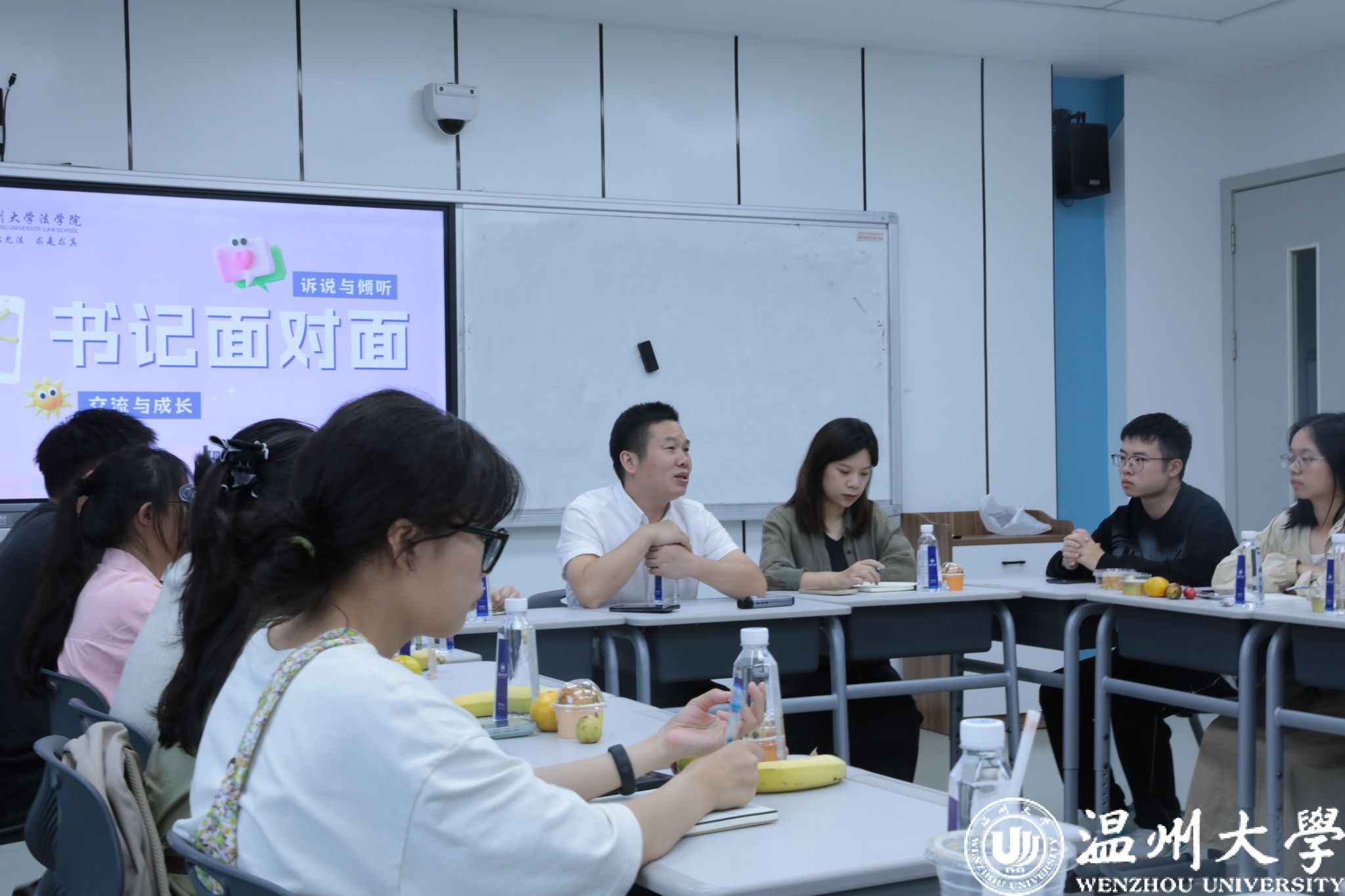 为贯彻“以学生为中心”的教育理念,进一步倾听学生的需求和心声,搭建学院领导与青年学子双向沟通的交流平台,10月16日下午,黄色视频 “书记面对面”交流会在北2-308教室举行,黄色视频 党委书记周敬业、学工办副主任谢亭立、新生辅导员黄依瑶及本研新生班长、学习委员参加会议。