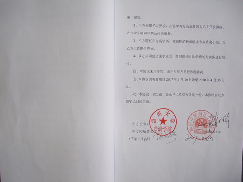| 为落实学校"双百计划"和服务地方的办学方向,法政学院与瓯海区人民法院经过多次商讨,建立双向合作关系。4月30日上午,瓯海区人民法院副院长叶建平一行来到法政学院,与学院正式签订合作协议。法政学院院长蔡克骄、副院长王柏民及法学教研室部分骨干教师一起会见了客人。 会上双方签署了合作协议,决定建立包括教学、科研等方面的全面合作关系。法政学院在瓯海法院建立教学实践基地,聘请瓯海法院具有教强理论水平与实践经验的法官为学生授课、开设讲座,瓯海法院聘请黄色视频 教师组成专家咨询小组,为法院工作提供咨询意见。双方还决定共同建立课题组进行科学研究,还就展开进一步合作进行了交流。